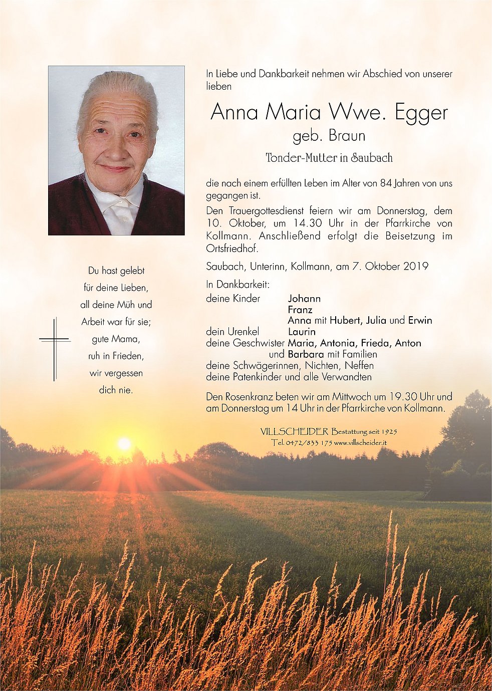 Begräbnisgottesdienst: 10.10. - 14:30 Uhr Kollmann