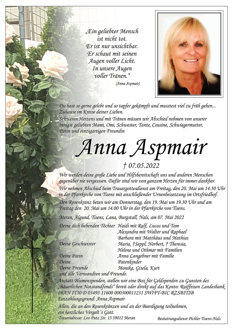 in der Pfarrkirche von Tisens mit anschließender Urnenbeisetzung im Ortsfriedhof.