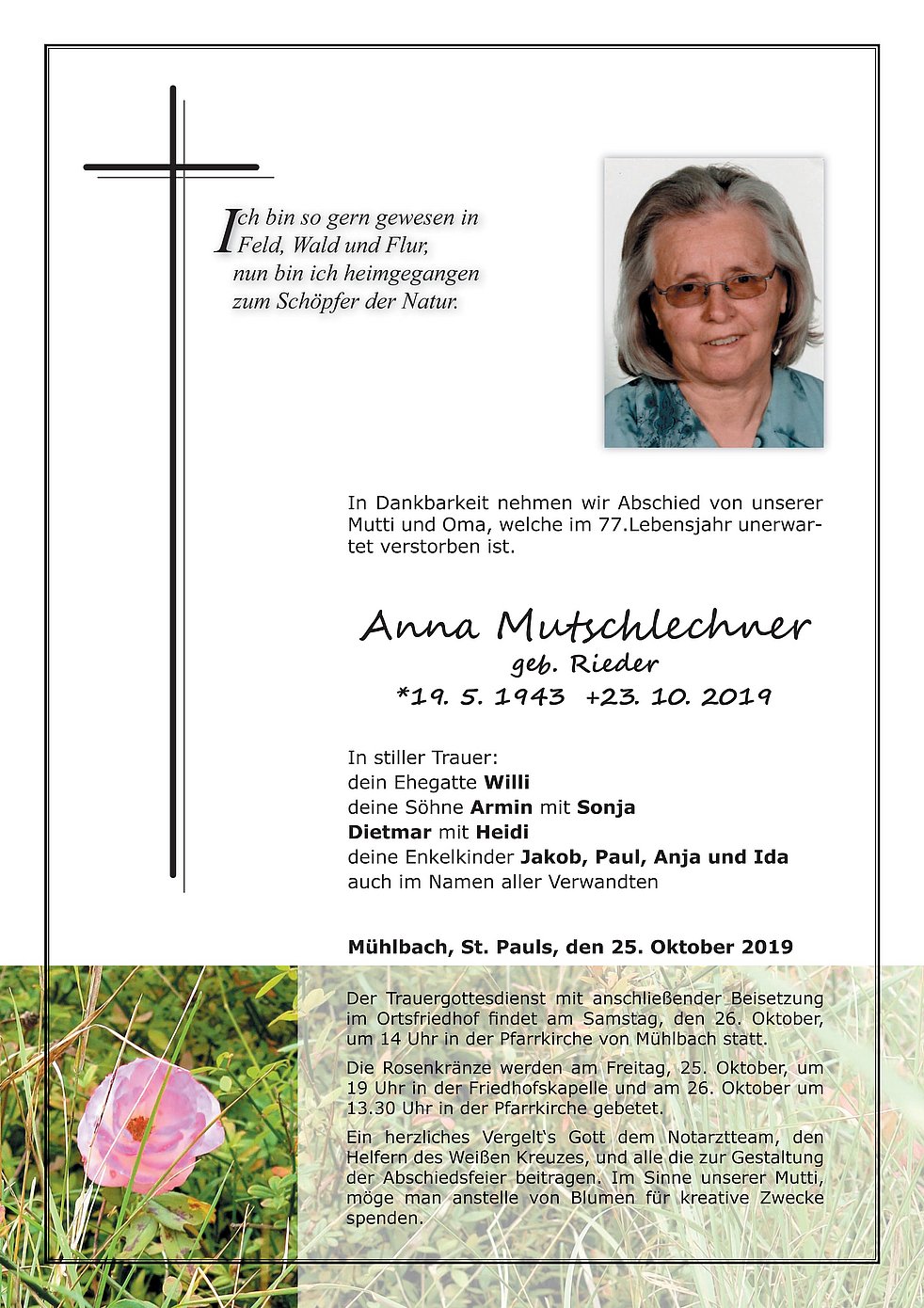 Begräbnisgottesdienst: 29.10. - 00:00 Uhr Mühlbach