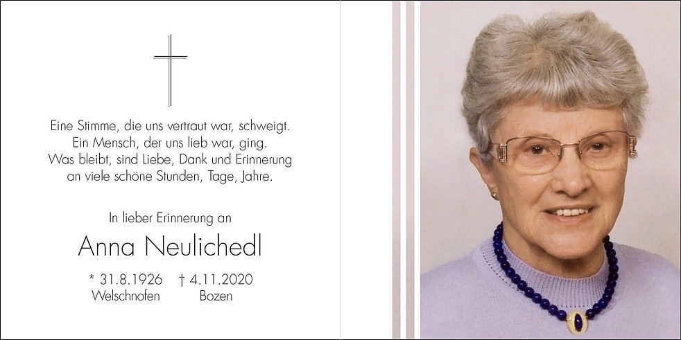 Ein besonderer Dank gilt den Hausärzten sowie dem gesamten Personal des Vinzenzhauses in Bozen für die liebevolle Betreuung.