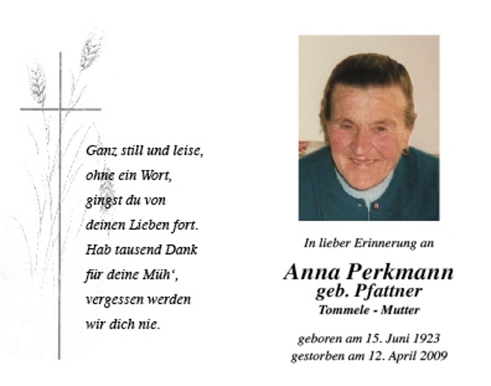 Wir danken dem Hausarzt Dr. Paul Innerhofer, sowie dem Hauspflegedienst für die langjährige Betreuung.