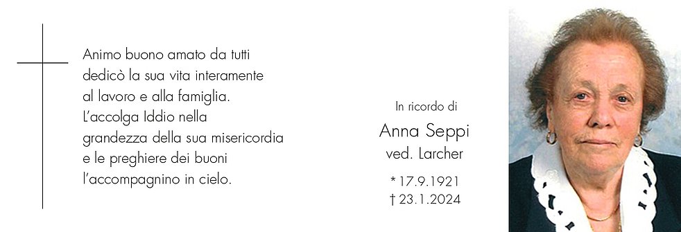 La S. Messa in suffragio verrà celebrata venerdì, 26 gennaio alle ore 11.00 nella chiesa parrocchiale Corpus Domini in Via Gutenberg, indi la nostra cara verrà cremata.