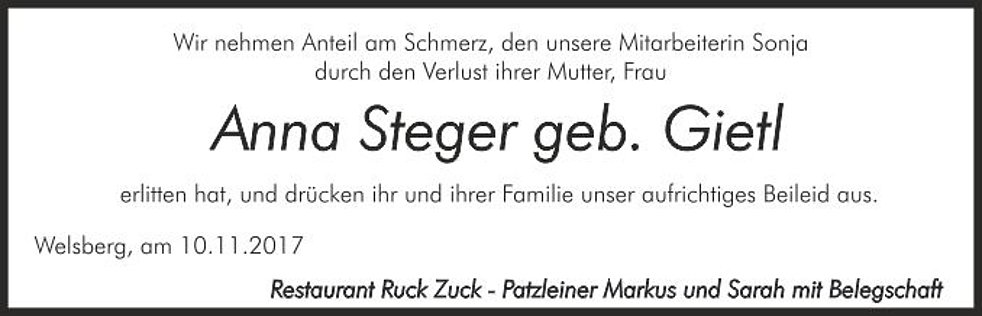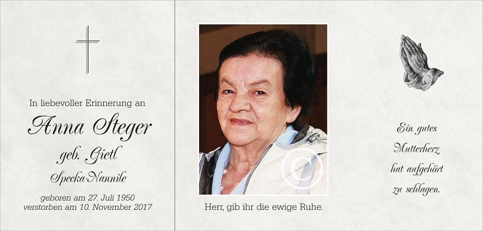 Ein besonderer Dank gilt der Hausärztin Frau Dr. Claudia Kraler, dem Weißen Kreuz und der Notfallseelsorge.