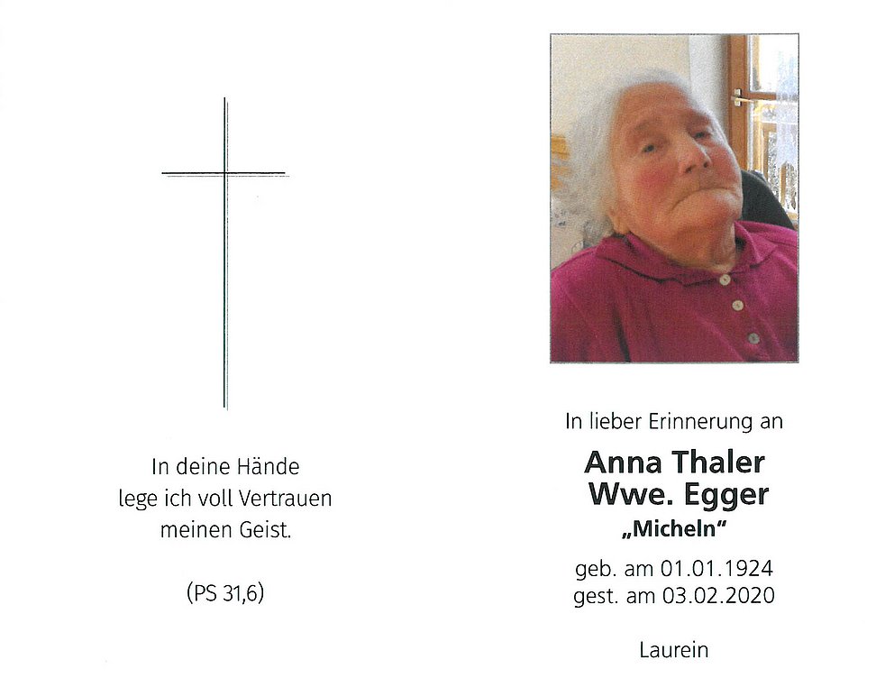 Anna Thaler Wwe. Egger