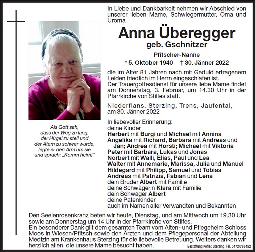 Anna Überegger geb. Gschnitzer