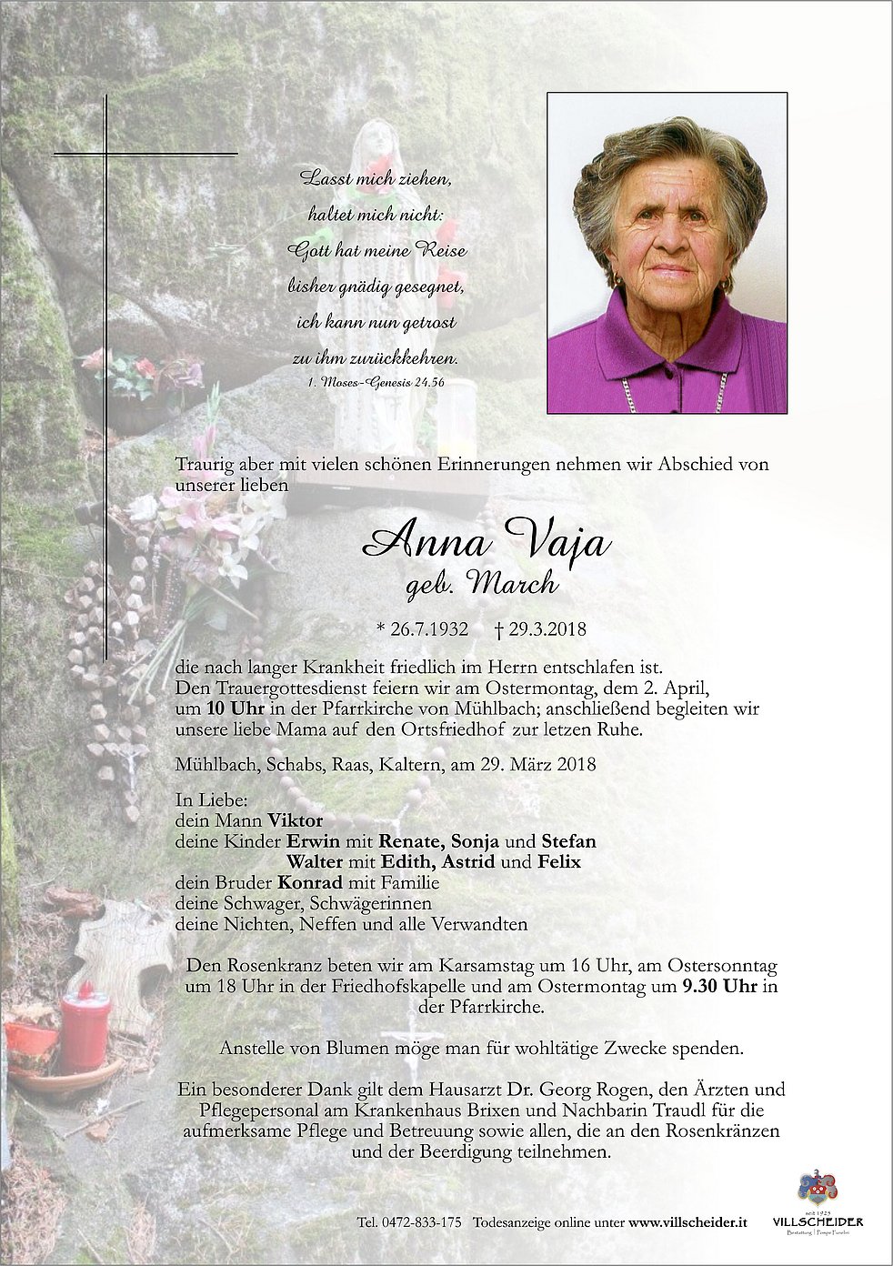 Ein besonderer Dank gilt dem Hausarzt Dr. Georg Rogen, den Ärzten und Pflegepersonal am Krankenhaus Brixen und der Nachbarin Traudl für die aufmerksame Pflege und Betreuung sowie allen, die an den Rosenkränzen und der Beerdigung teilnehmen.