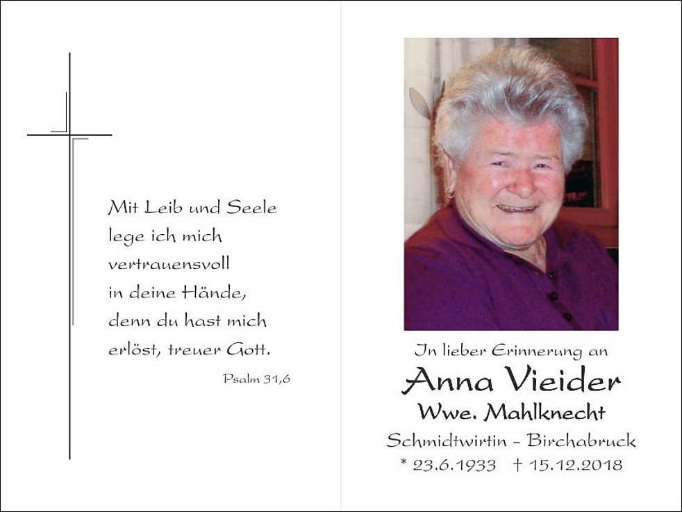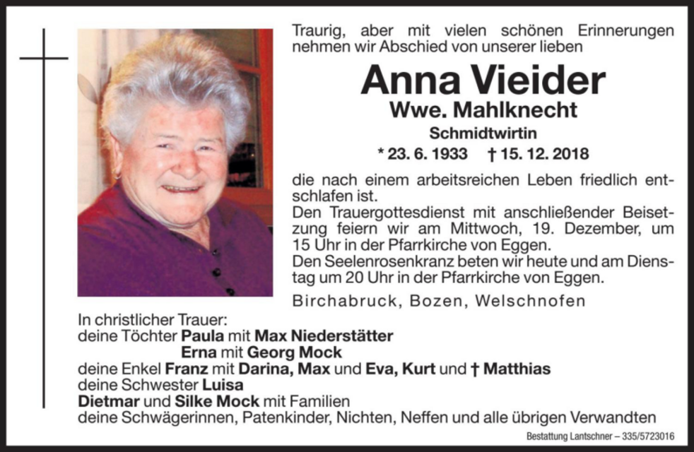 Anna Vieider Wwe. Mahlknecht