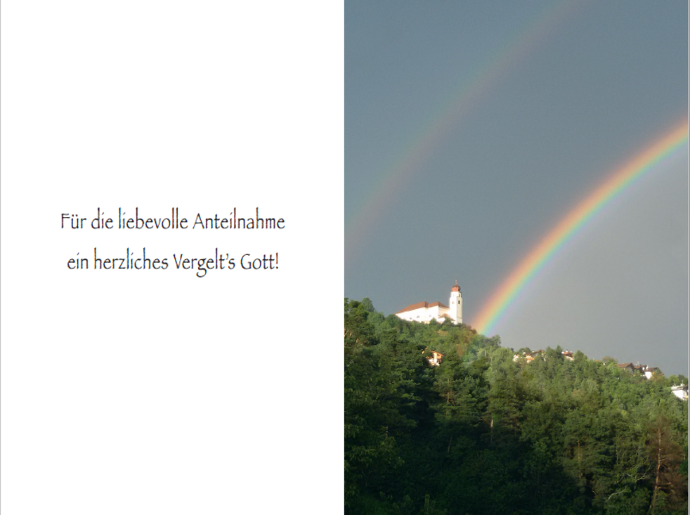 Ein besonderer Dank gilt dem Pflegeteam des Seniorenwohnheims Lajen, den behandelnden Ärzten Dr. Mussner und Dr. Lintner für die liebevolle Betreuung.