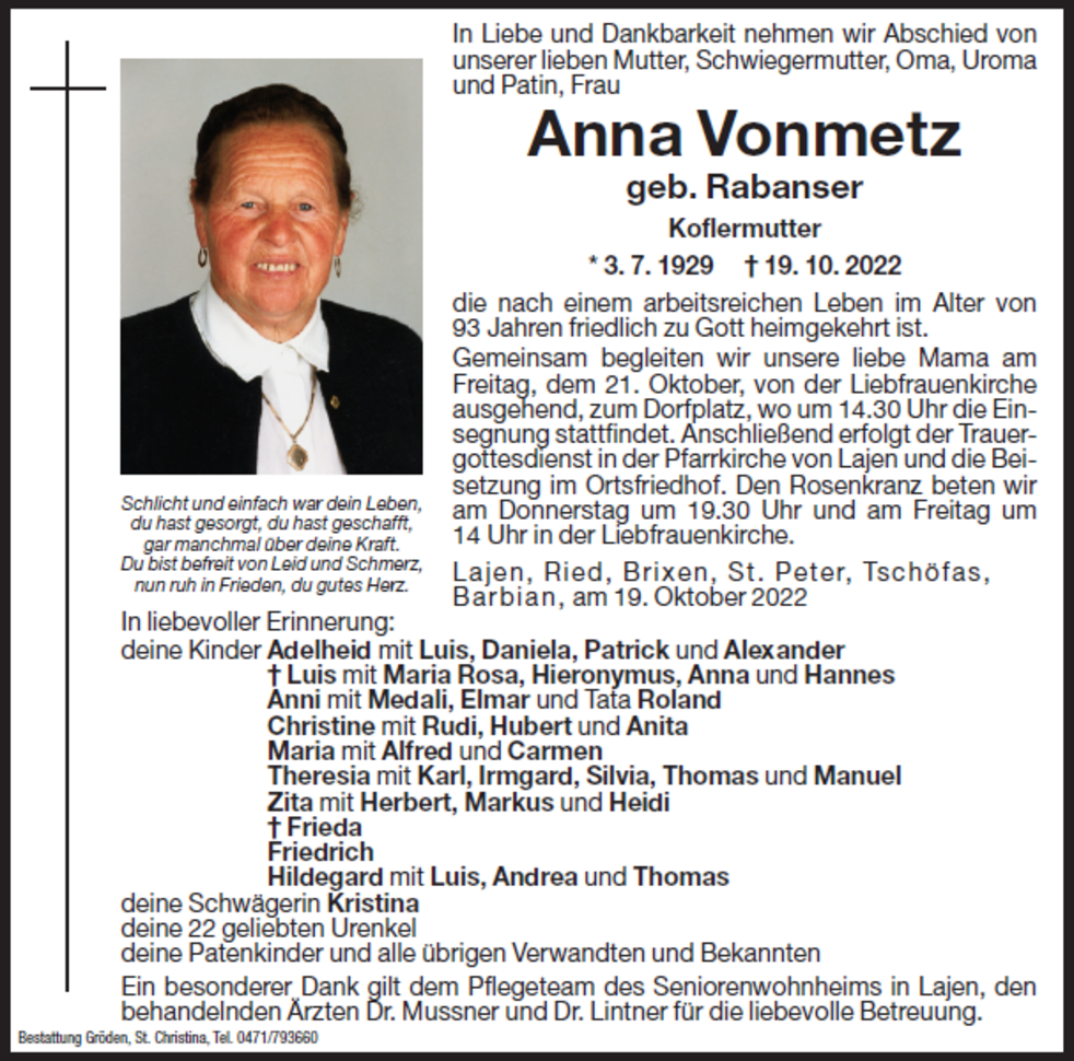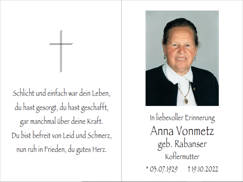 Anna Vonmetz geb. Rabanser