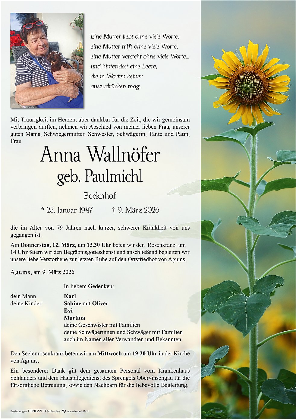Die Mutter zu verlieren ist Schmerz, sie in den Händen unseres Gottes zu wissen, ist Trost.