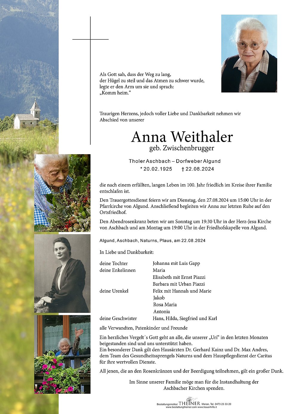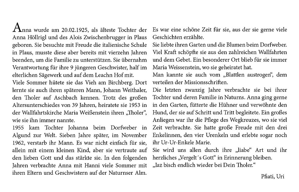Der Abschied fällt schwer. Ich weiß, wie eng und schön Euer Verhältnis war, wie viel sie Dir mitgegeben hat und wie Du immer für sie da warst. Sie wird weiterhin zu Deinen Gedanken und Gefühlen gehören, die Erinnerung an sie und ihre Werte bleiben in Deinem Leben und bereichern es.