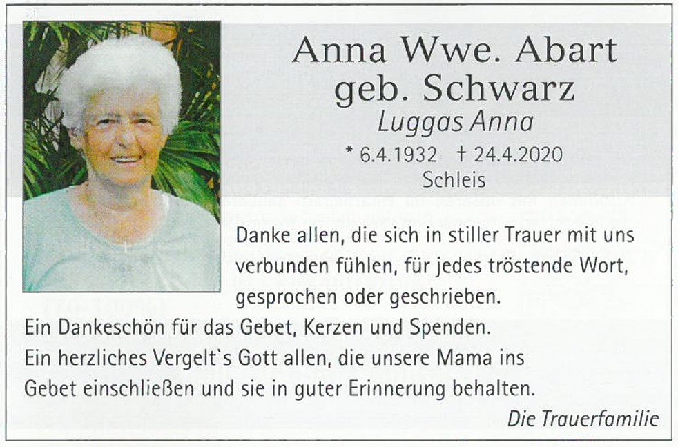 Ein herzliches Vergelt’s Gott für die Anteilnahme und das Gebet
