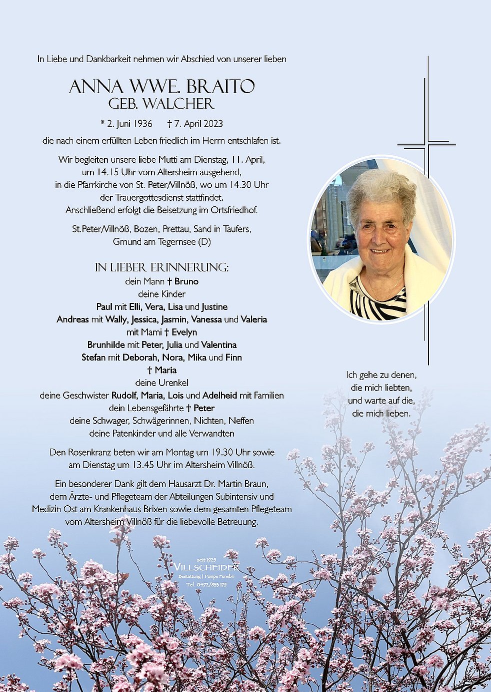 Liebe Anna ruhe in Gottes Frieden und beschütze deine Lieben. Unsere herzliche Anteilnahme der Familie Braito und Annas Geschwister!