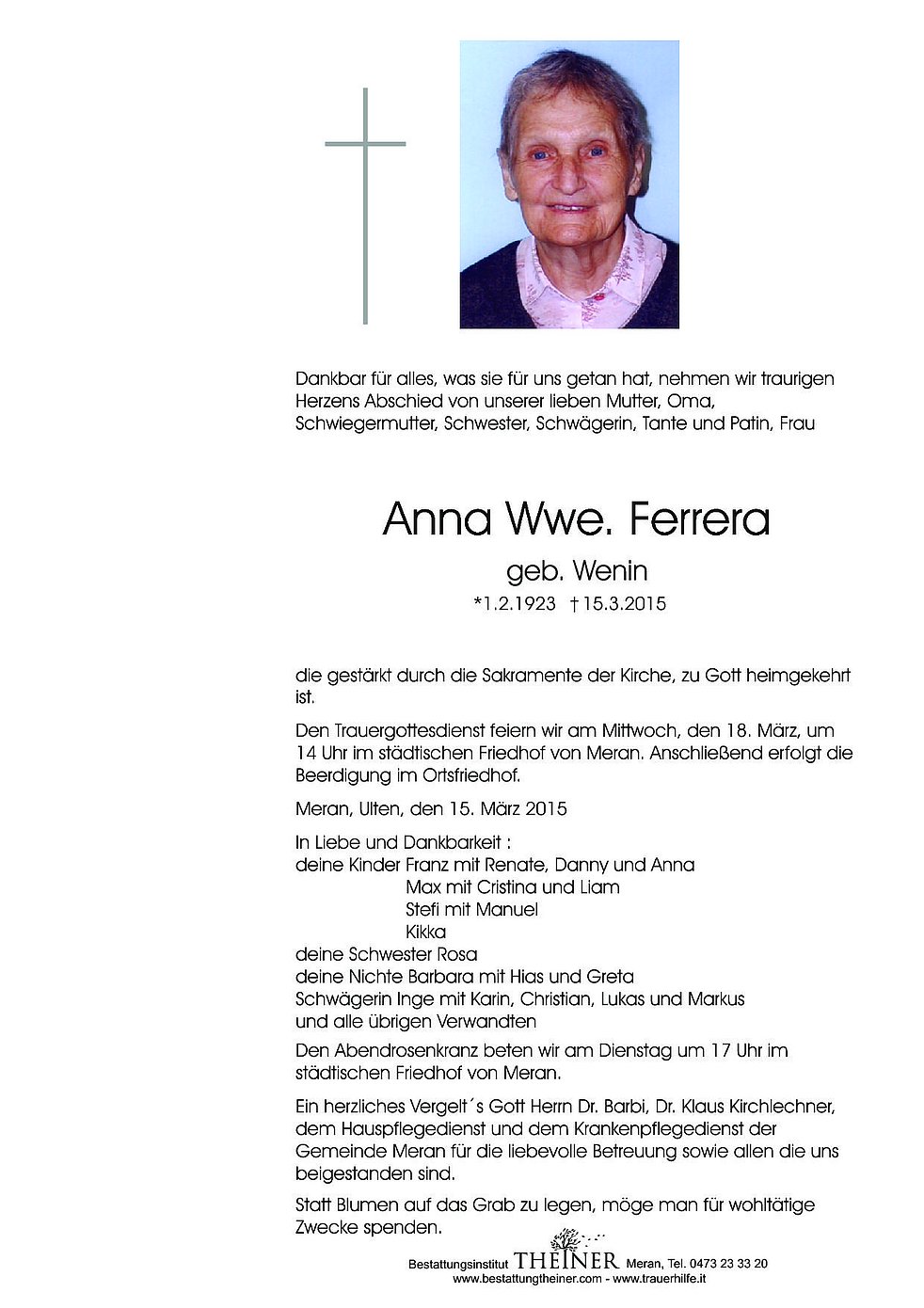 14 Uhr im städtischen Friedhof von Meran. Anschließend erfolgt die