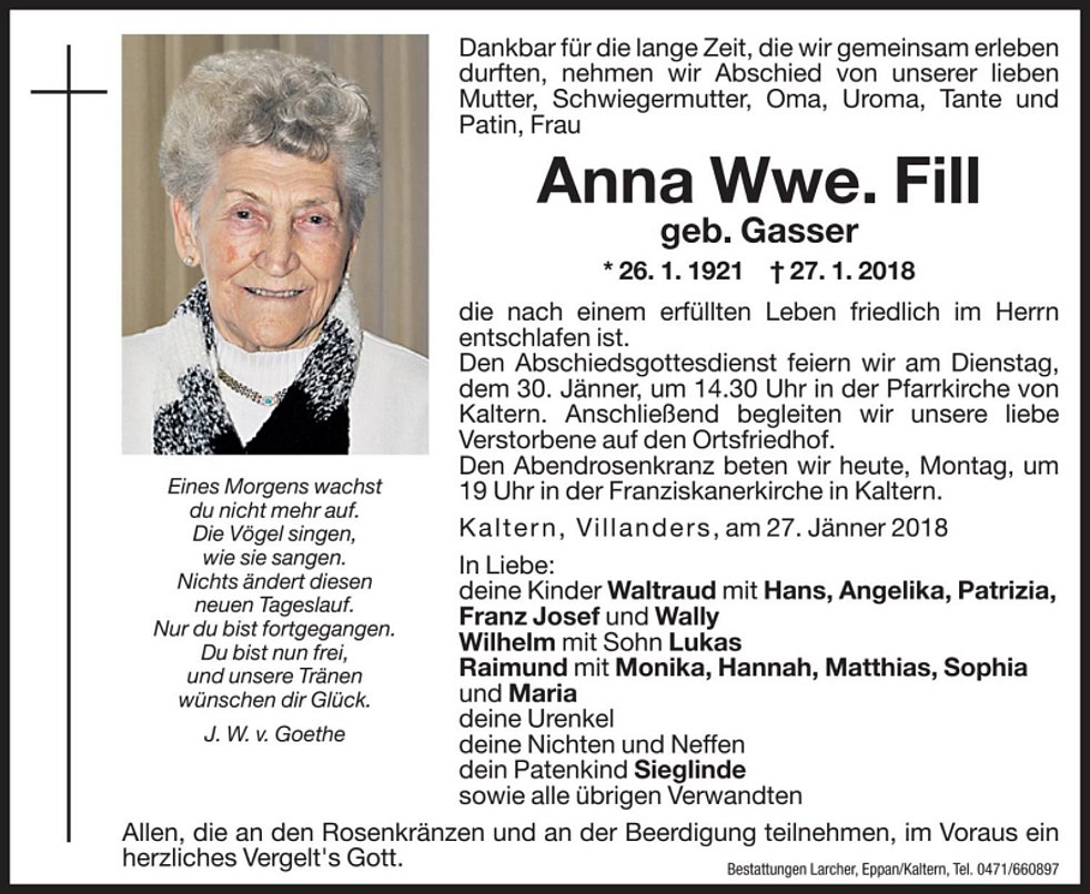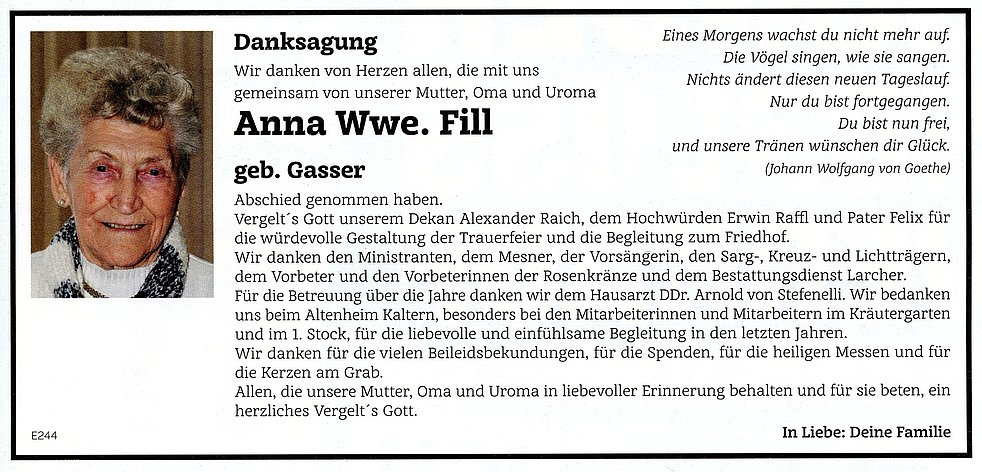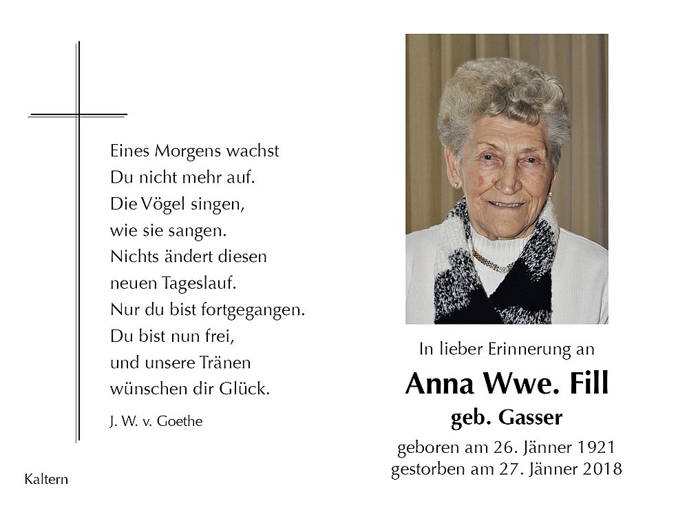 Anna Wwe. Fill geb. Gasser