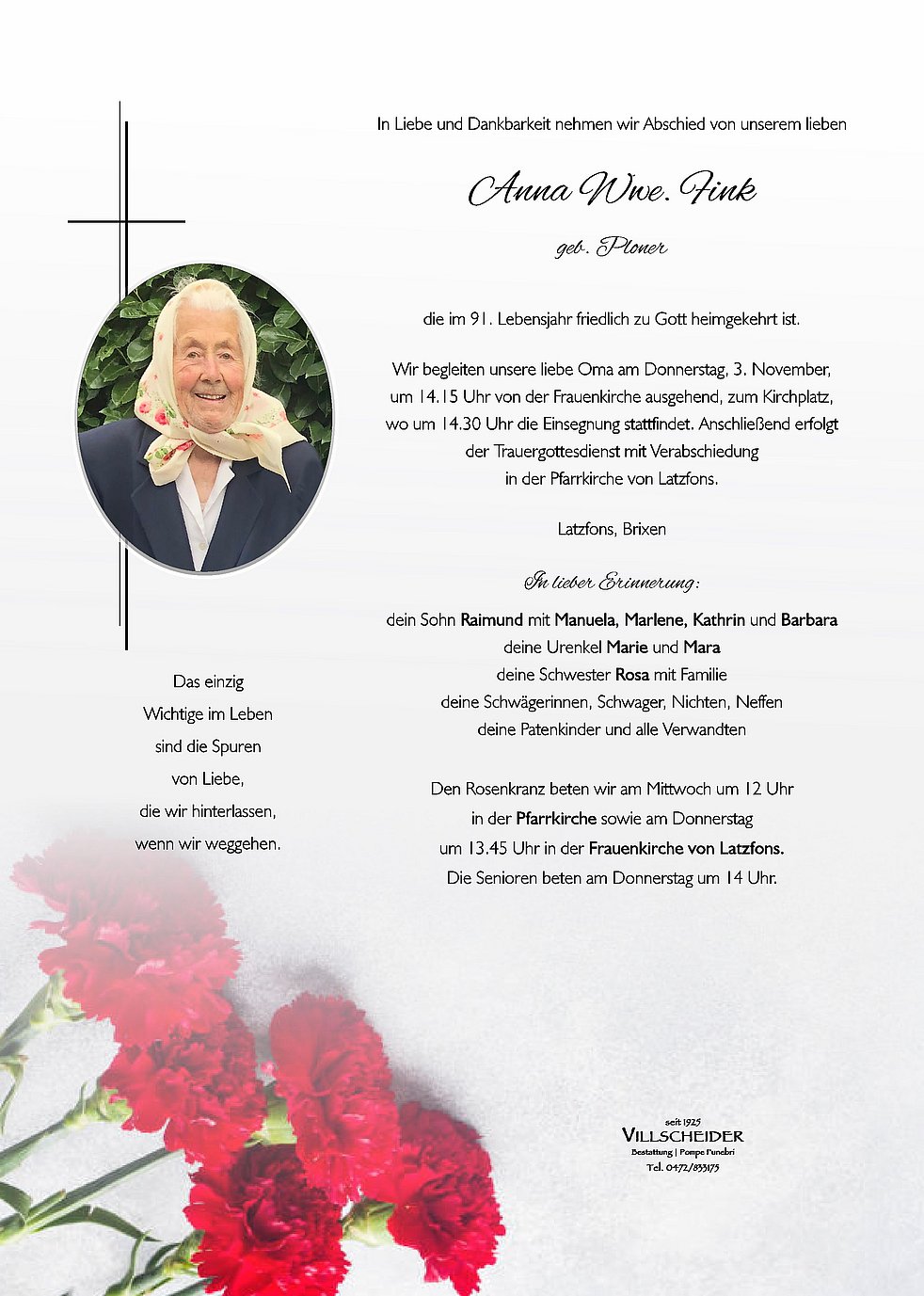 Trauerfeier: 03.11. - 14:30 Uhr Latzfons