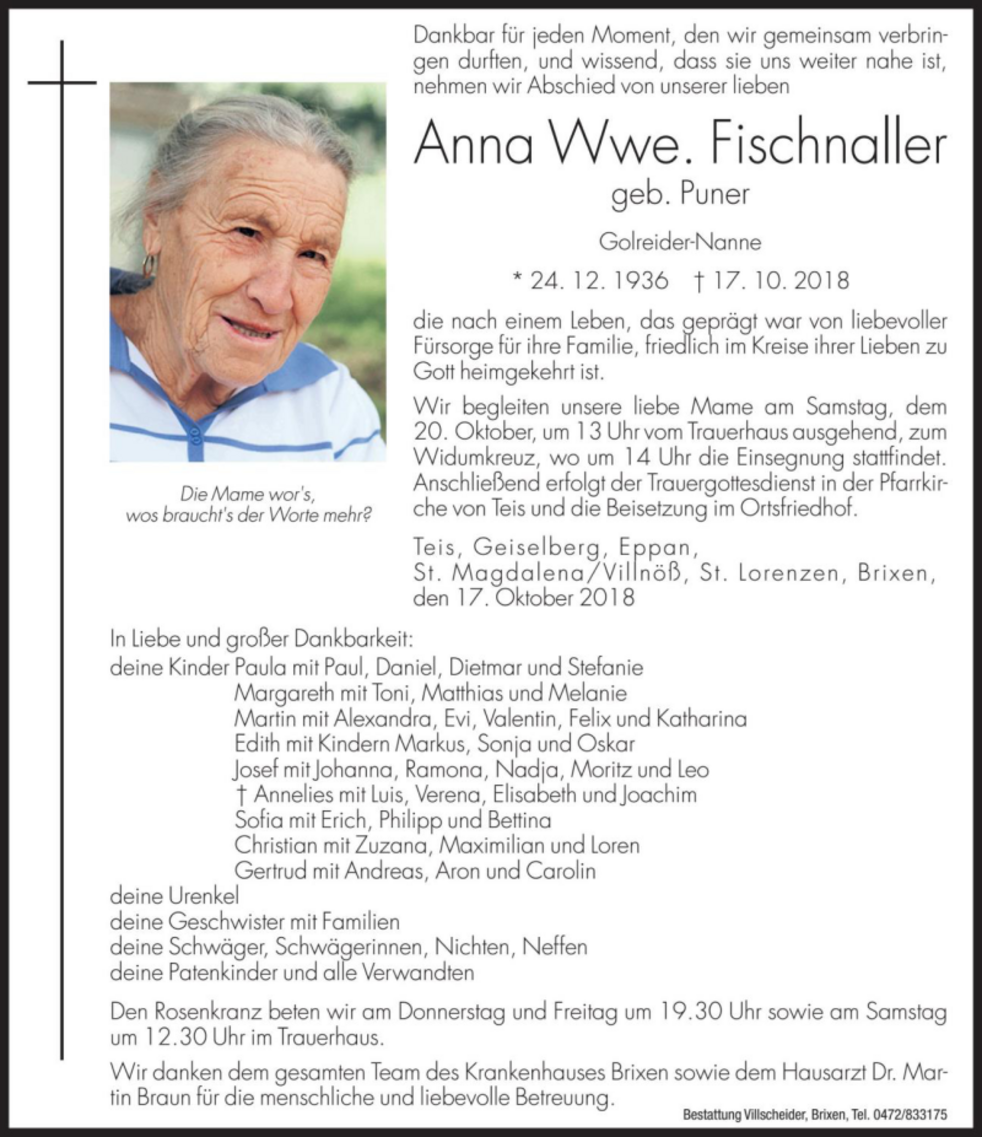 Anna Wwe. Fischnaller