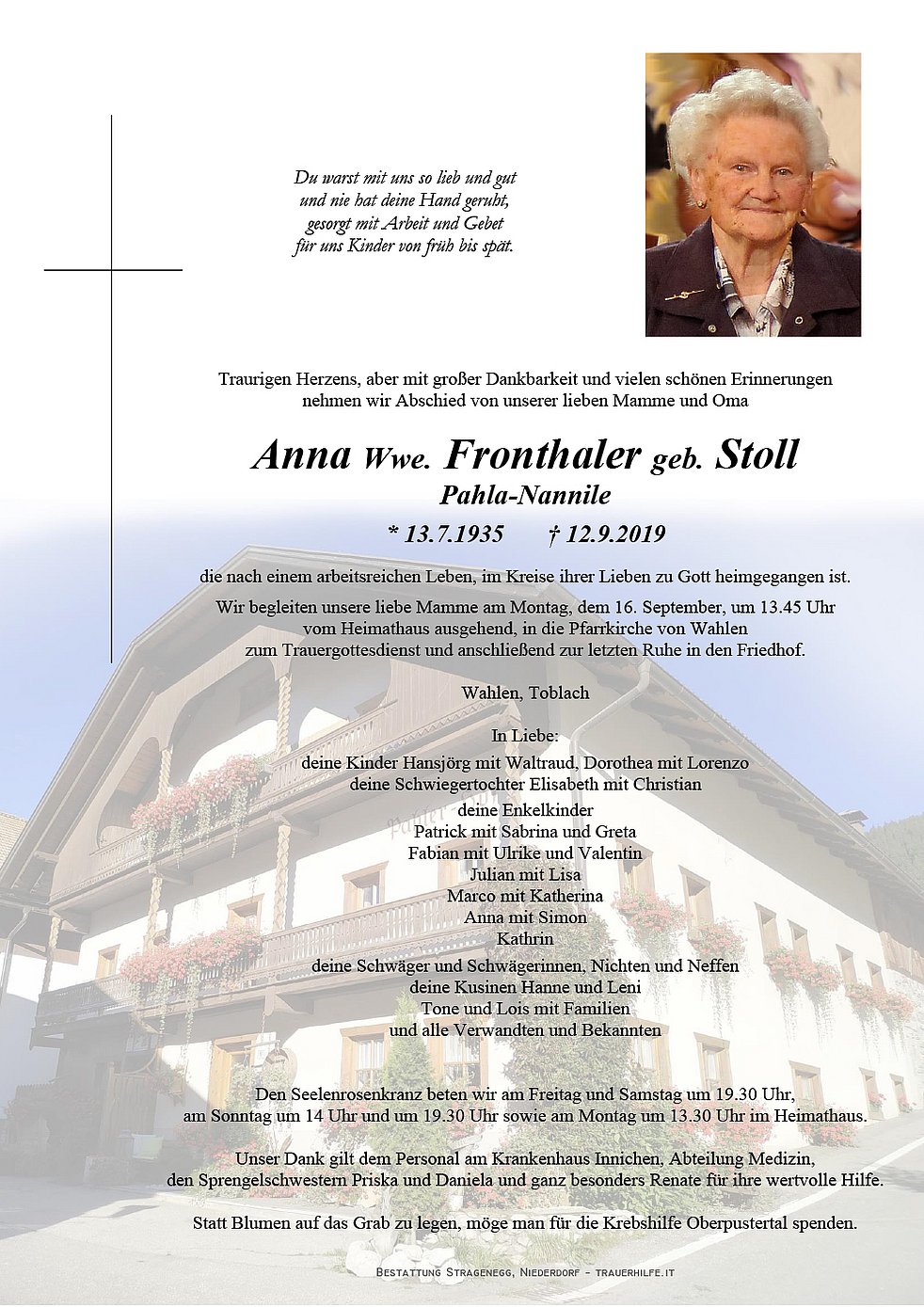 Statt Blumen auf das Grab zu legen, möge man für die Krebshilfe Oberpustertal spenden.