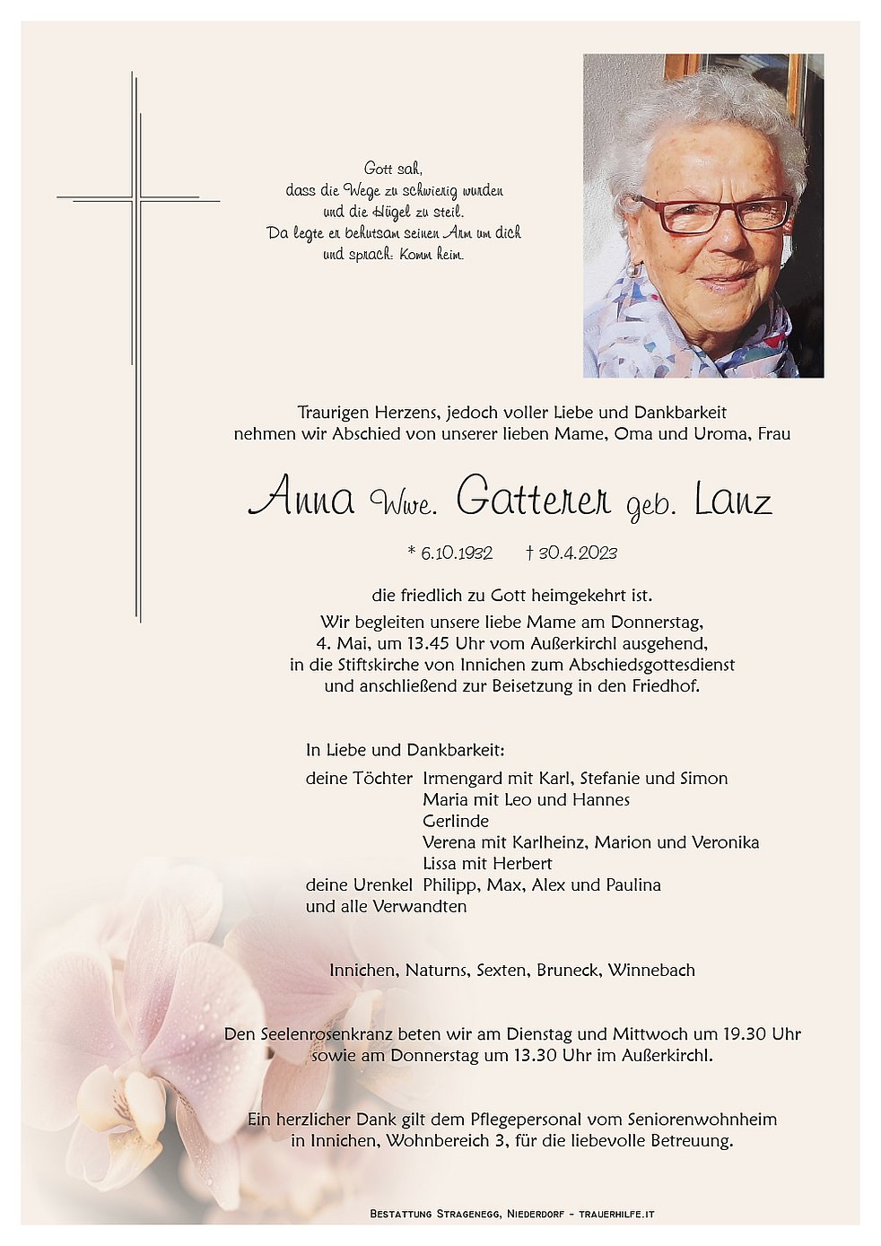 Liebe Gerlinde mit Schwestern und Trauerfamilien,
