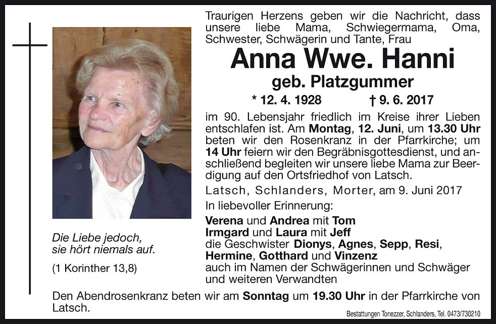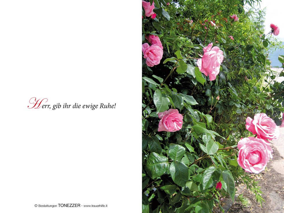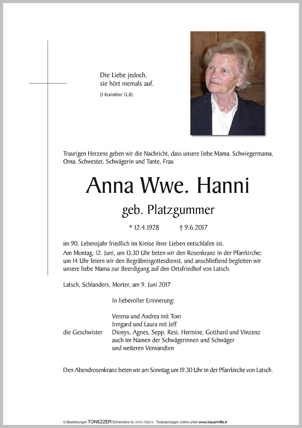 Am Montag, 12. Juni, um 13.30 Uhr beten wir den Rosenkranz in der Pfarrkirche; um 14 Uhr feiern wir den Begräbnisgottesdienst und anschließend begleiten wir unsere liebe Mama zur Beerdigung auf den Ortsfriedhof von Latsch.