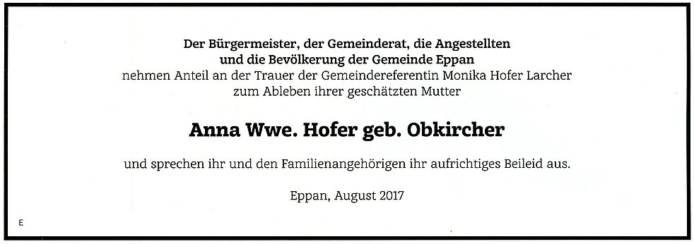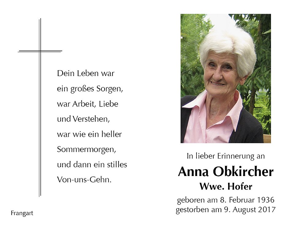 Anna Wwe. Hofer geb. Obkircher