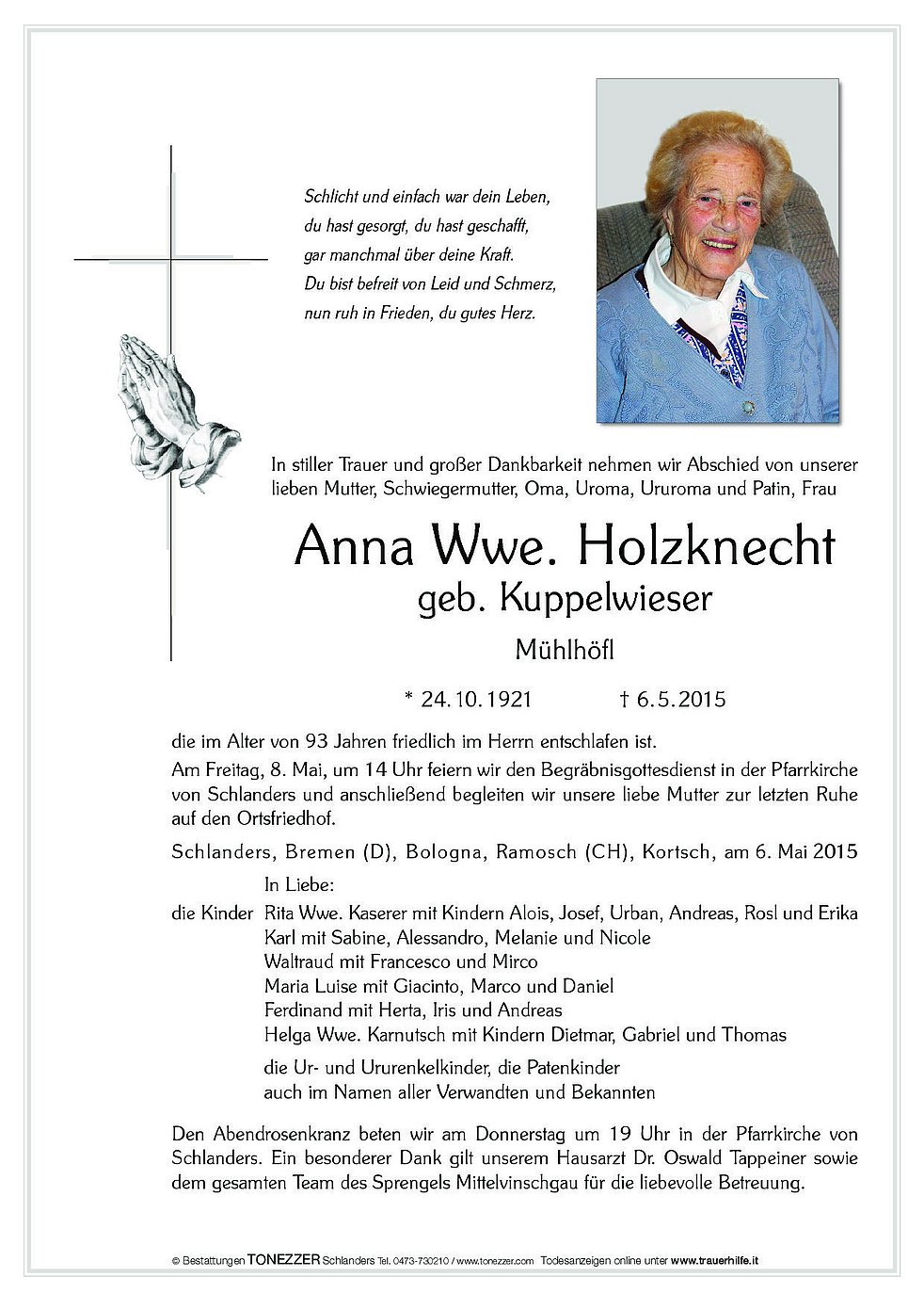 Anna Wwe. Holzknecht geb. Kuppelwieser