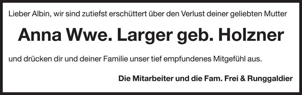 Fassungslos und in unsagbarem Schmerz, jedoch dankbar für die gemeinsam erlebten schönen Stunden, geben wir die traurige Nachricht bekannt, dass unsere liebe Mutter, Schwiegermutter, Oma, Uroma, Schwester, Schwägerin, Tante und Patin, Frau
