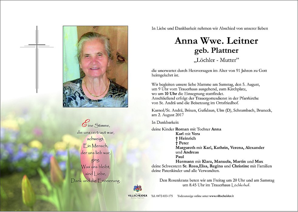 von St. Andrä und die Beisetzung im Ortsfriedhof.