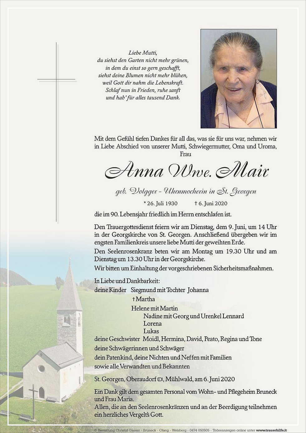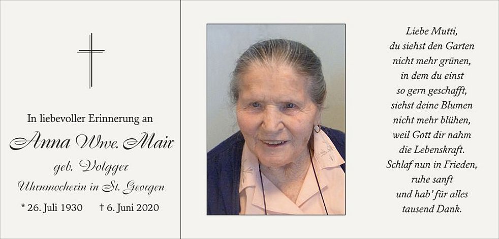 Den Trauergottesdienst feiern wir am Dienstag, dem 9. Juni, um 14 Uhr in der Georgskirche von St. Georgen. Anschließend übergeben wir im engsten Familienkreis unsere liebe Mutti der geweihten Erde.