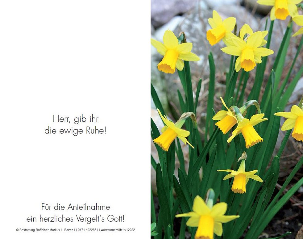 Ein besonderer Dank gilt dem Hausarzt Dr. Schwembacher, dem Sozialsprengel Überetsch und dem Pflegepersonal des Jesuheims in Girlan für die liebevolle Betreuung.