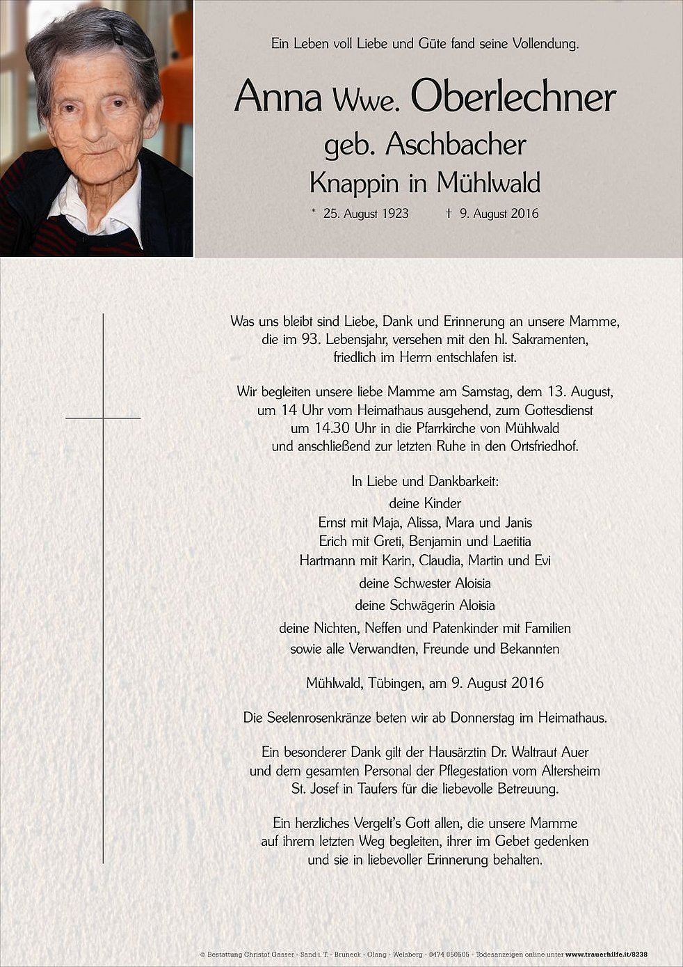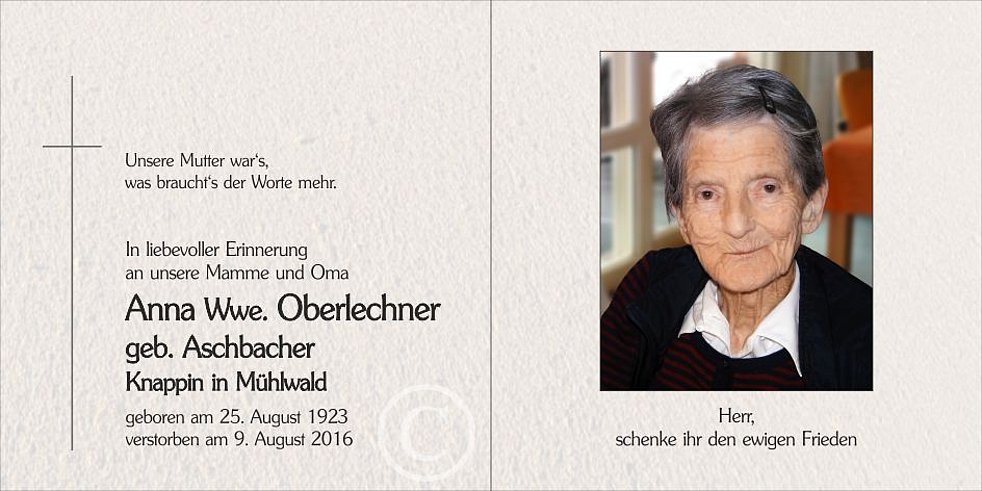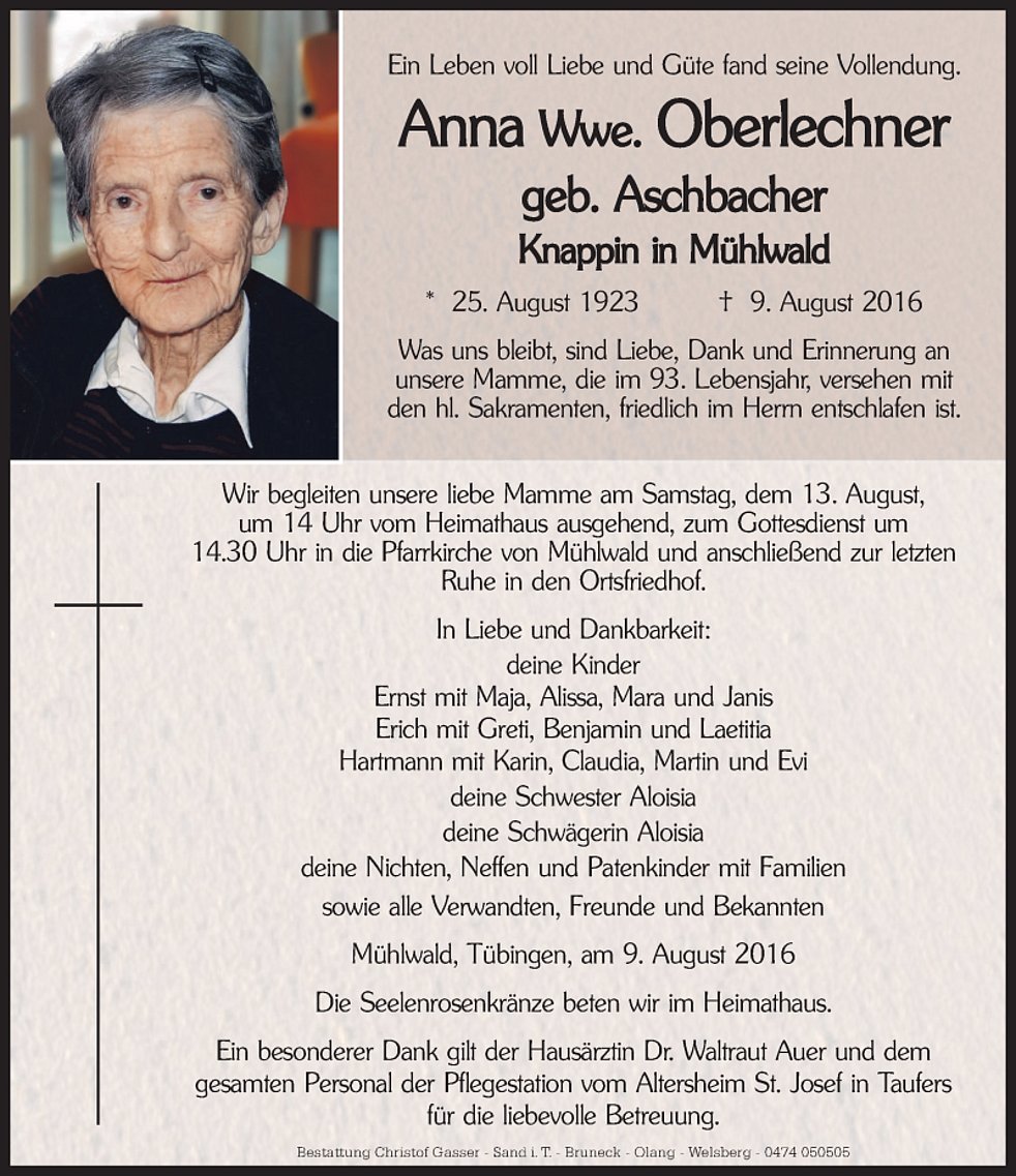 die im 93. Lebensjahr, versehen mit den hl. Sakramenten,