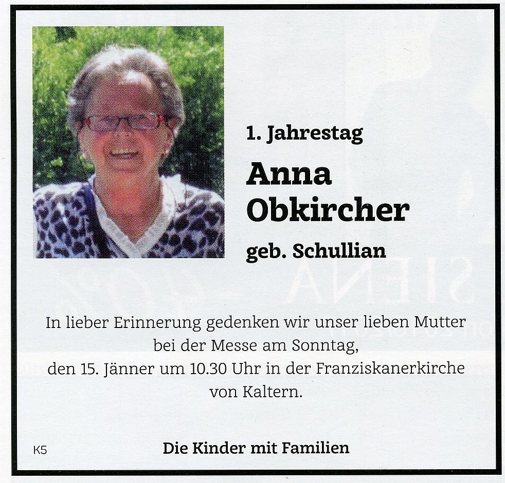 Anna Wwe. Obkircher geb. Schullian