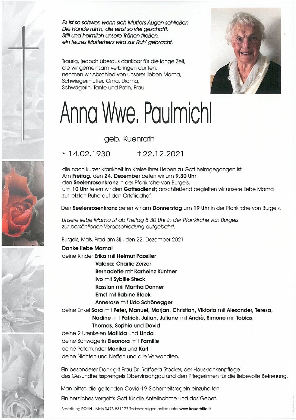Den Seelenrosenkranz beten wir am Donnerstag um 19 Uhr in der Pfarrkirche von Burgeis.