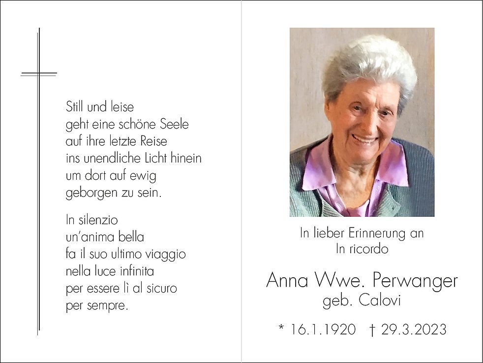 Ne danno il triste annuncio Tania con famiglia, Walter con Kristin e famiglia, Brigitte e Annelies con famiglia Werner con Michaela e conoscenti tutti.