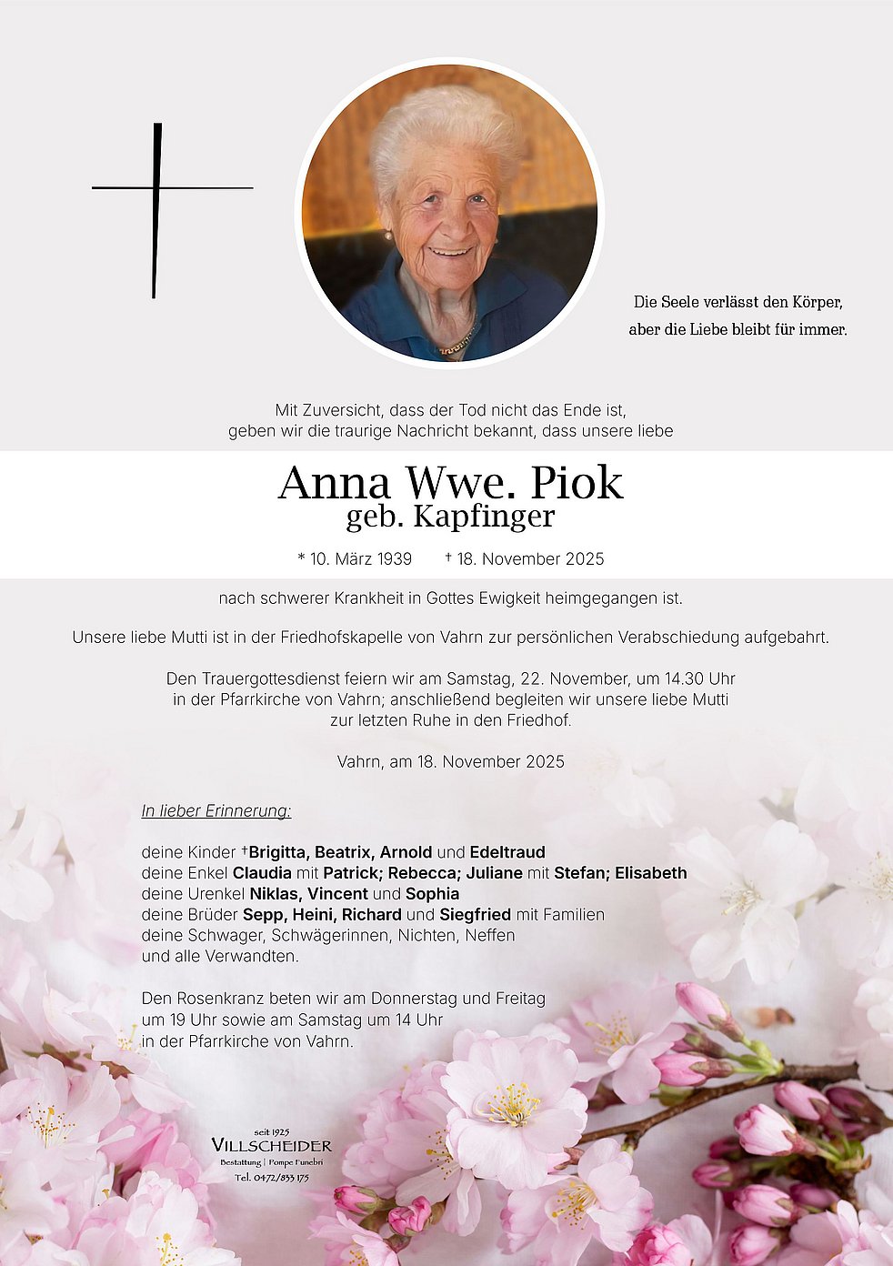 Trauerfeier: 22.11. - 14:30 Uhr Vahrn