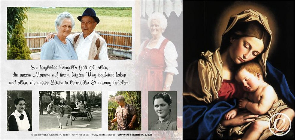 Ein besonderer Dank gilt ihrem Hausarzt Dr. Martin Vieider, den Sprengelschwestern sowie den Betreuerinnen Ildiko und Biljana für die liebevolle Betreuung.