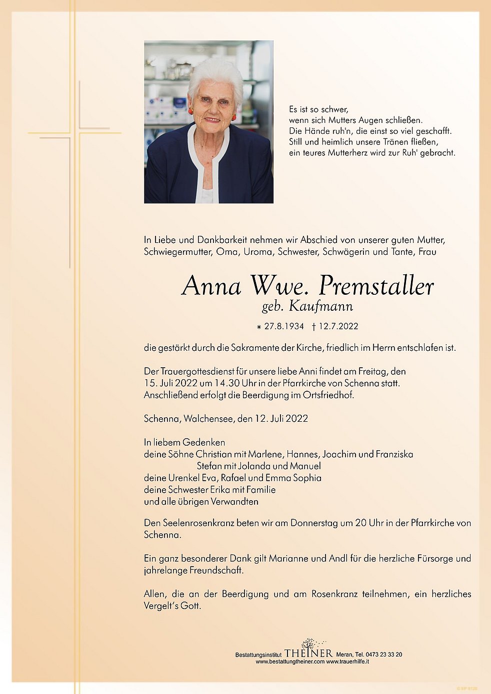 Der Trauergottesdienst für unsere liebe Anni findet am Freitag, den