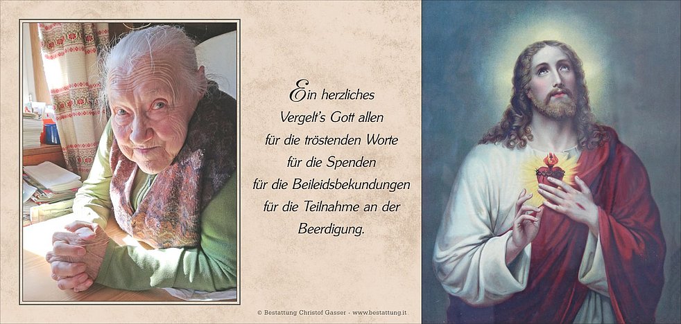 Für die liebevolle Begleitung danken wir der Hausärztin Frau Dr. Astride Bonura, der Palliativärztin Frau Dr. Monika Hilber, den Sprengelschwestern, besonders Frau Margareth, und Frau Sabina von der Hospizbegleitung.