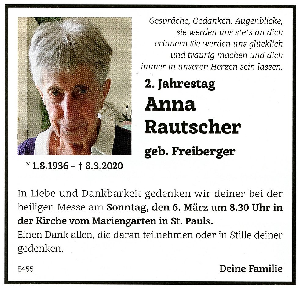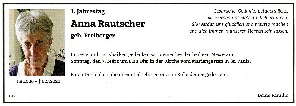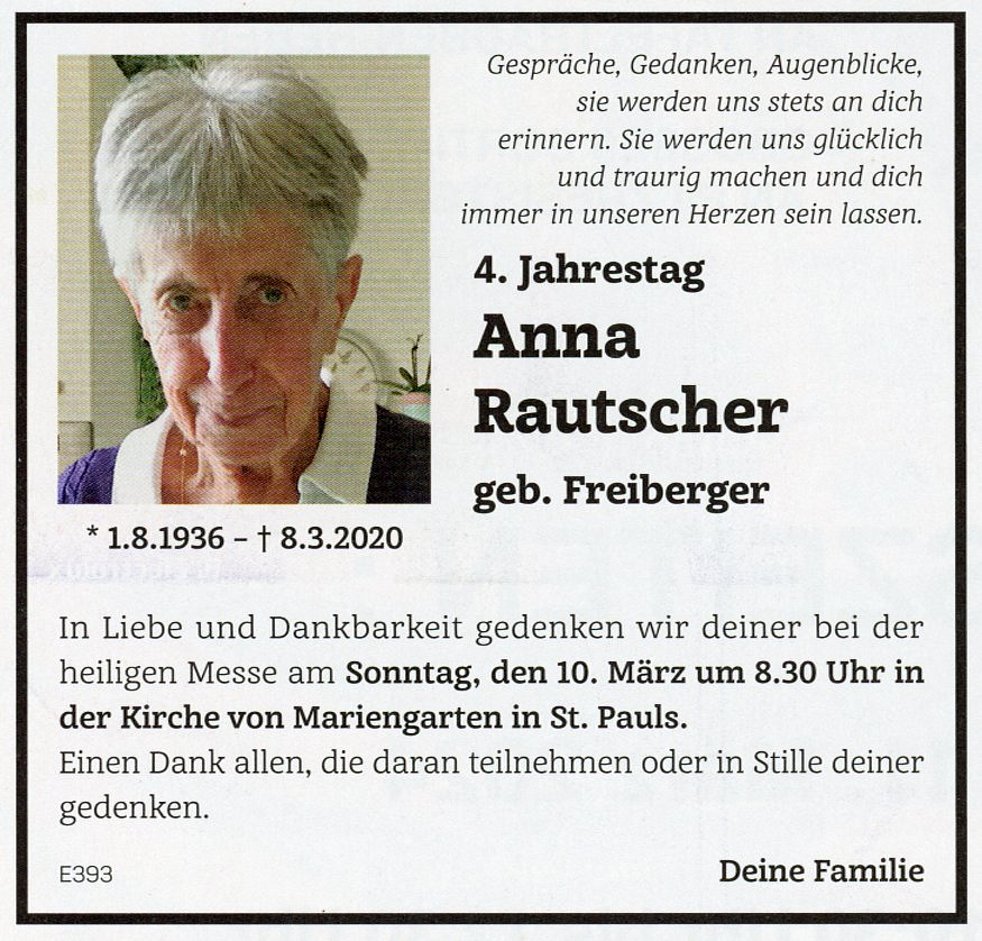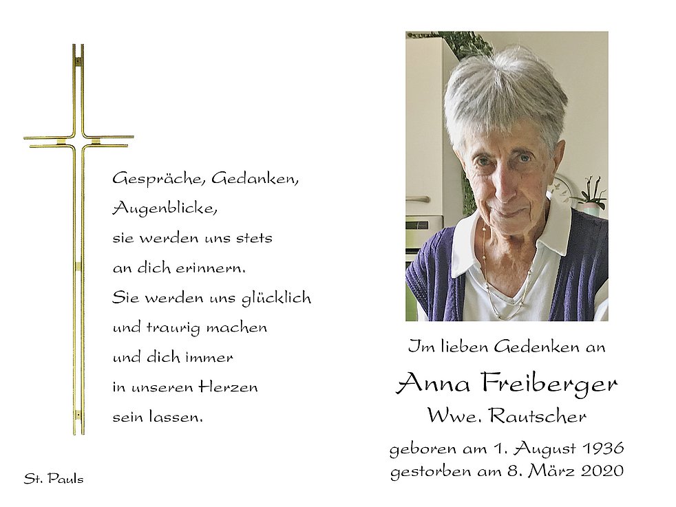 Anna Wwe. Rautscher geb. Freiberger