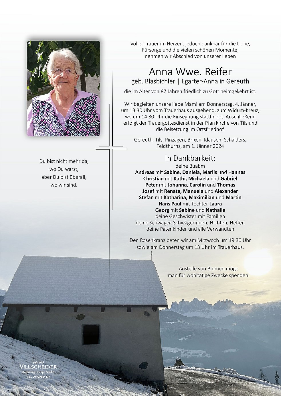 Was man tief in seinem Herzen besitzt, dass kann man durch den Tod nicht verlieren. Lieber Stefan, lieber Josef, wir moechten euch unser ganz grosses Beileid ausdruecken, zum Tode eurer lieben Mutter.