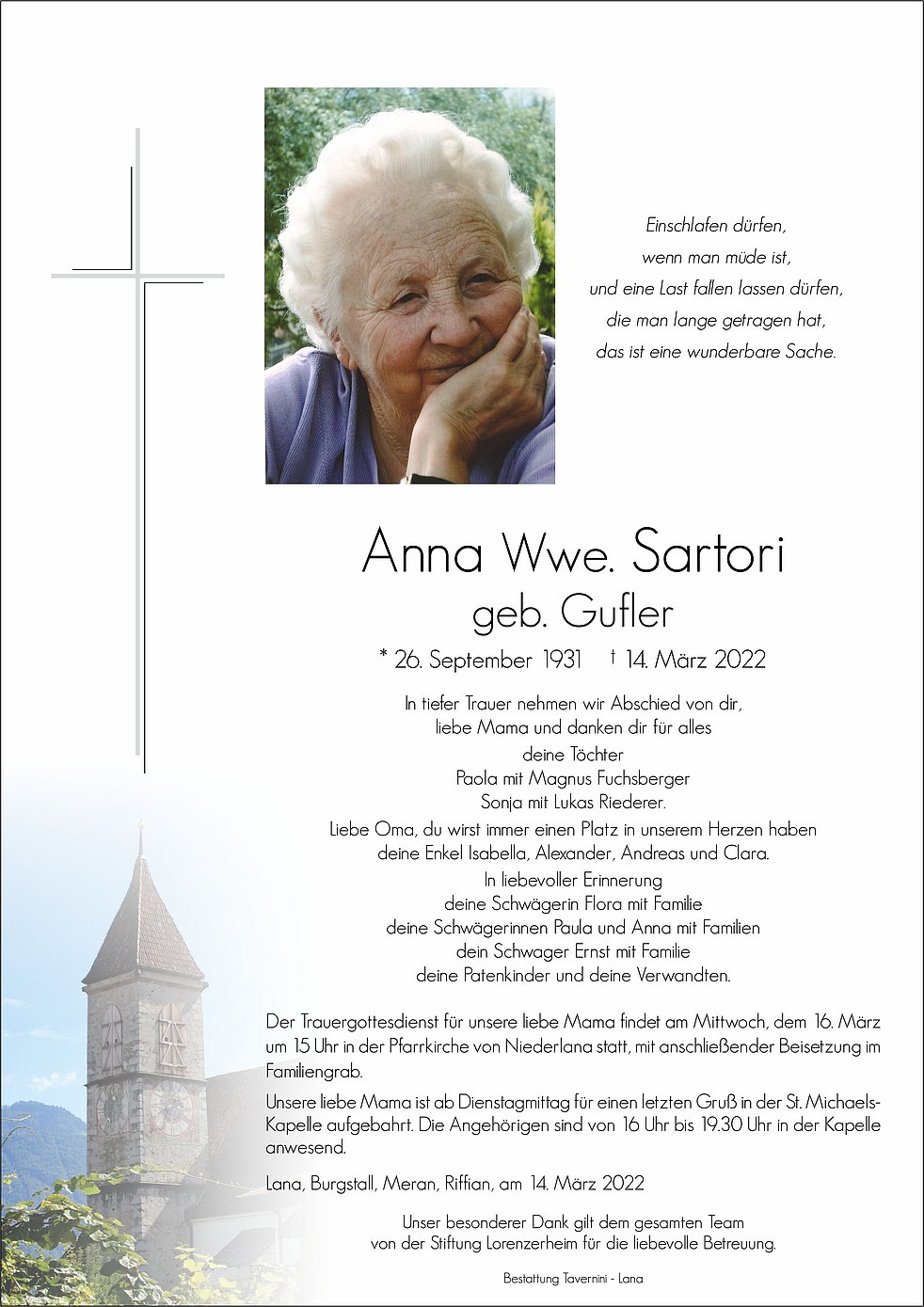 Anna, iatz bisch im Ewigen Licht Gottes. Kathi & Erwin