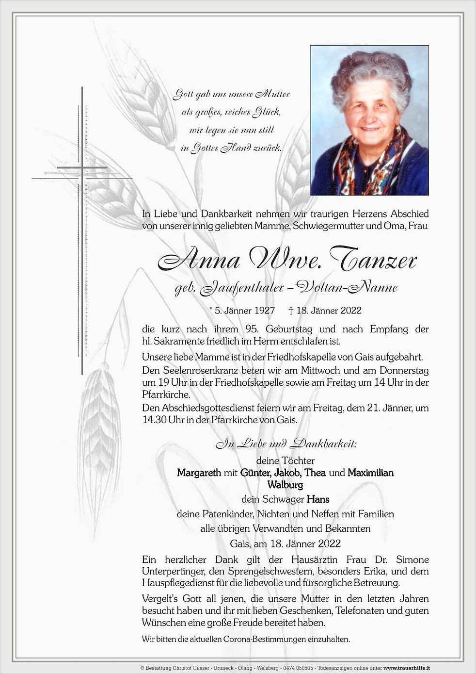 Vergelt’s Gott all jenen, die unsere Mutter in den letzten Jahren besucht haben und ihr mit lieben Geschenken, Telefonaten und guten Wünschen eine große Freude bereitet haben.
