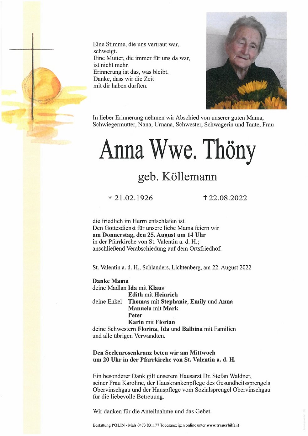 In lieber Erinnerung nehmen wir Abschied von unserer guten Mama,
