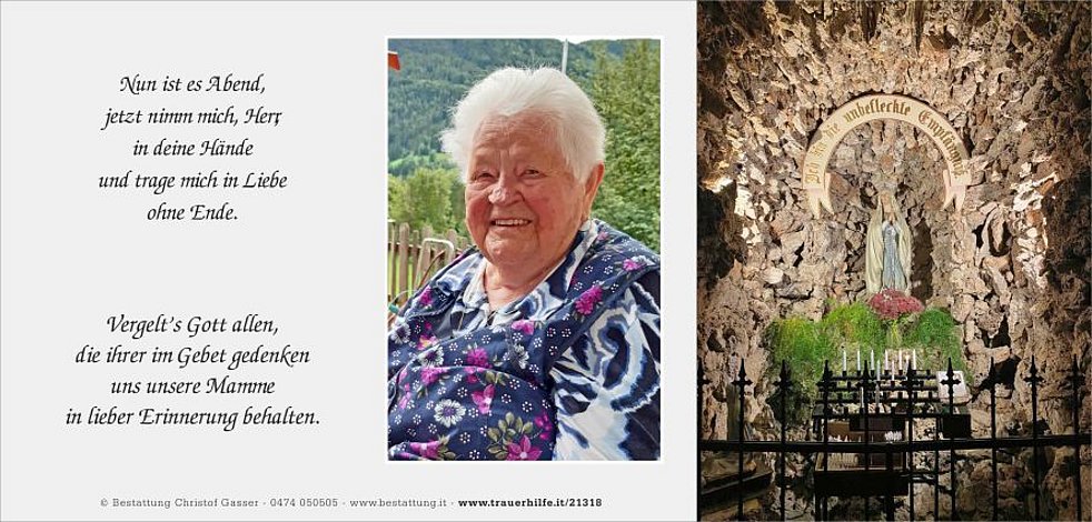 Vergelt’s Gott allen, die unsere Mamme auf ihrem letzten Weg begleiten, ihrer im Gebet gedenken und sie in liebevoller Erinnerung behalten.