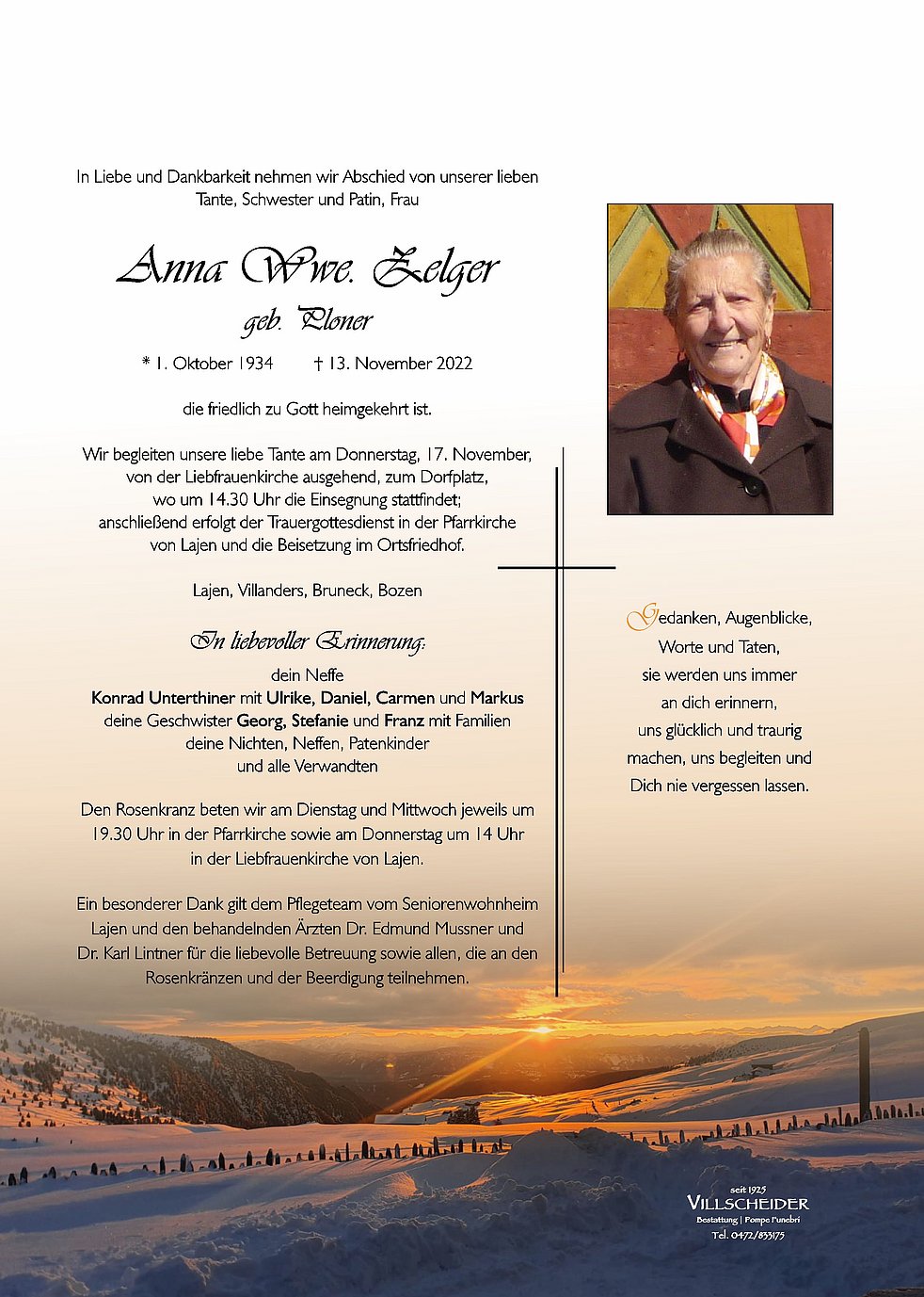 Begräbnisgottesdienst: 17.11. - 14:30 Uhr Lajen
