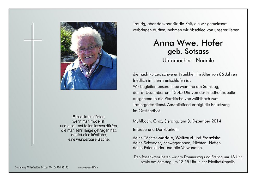 Anna Wwe. Hofer