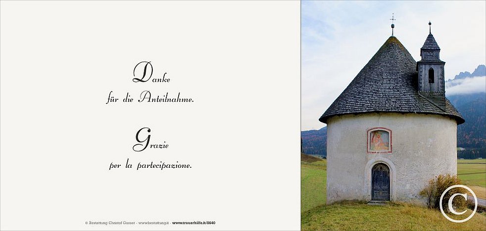 Der Trauergottesdienst findet am Samstag, 5. November, um 14 Uhr in der Pfarrkirche von Toblach statt.