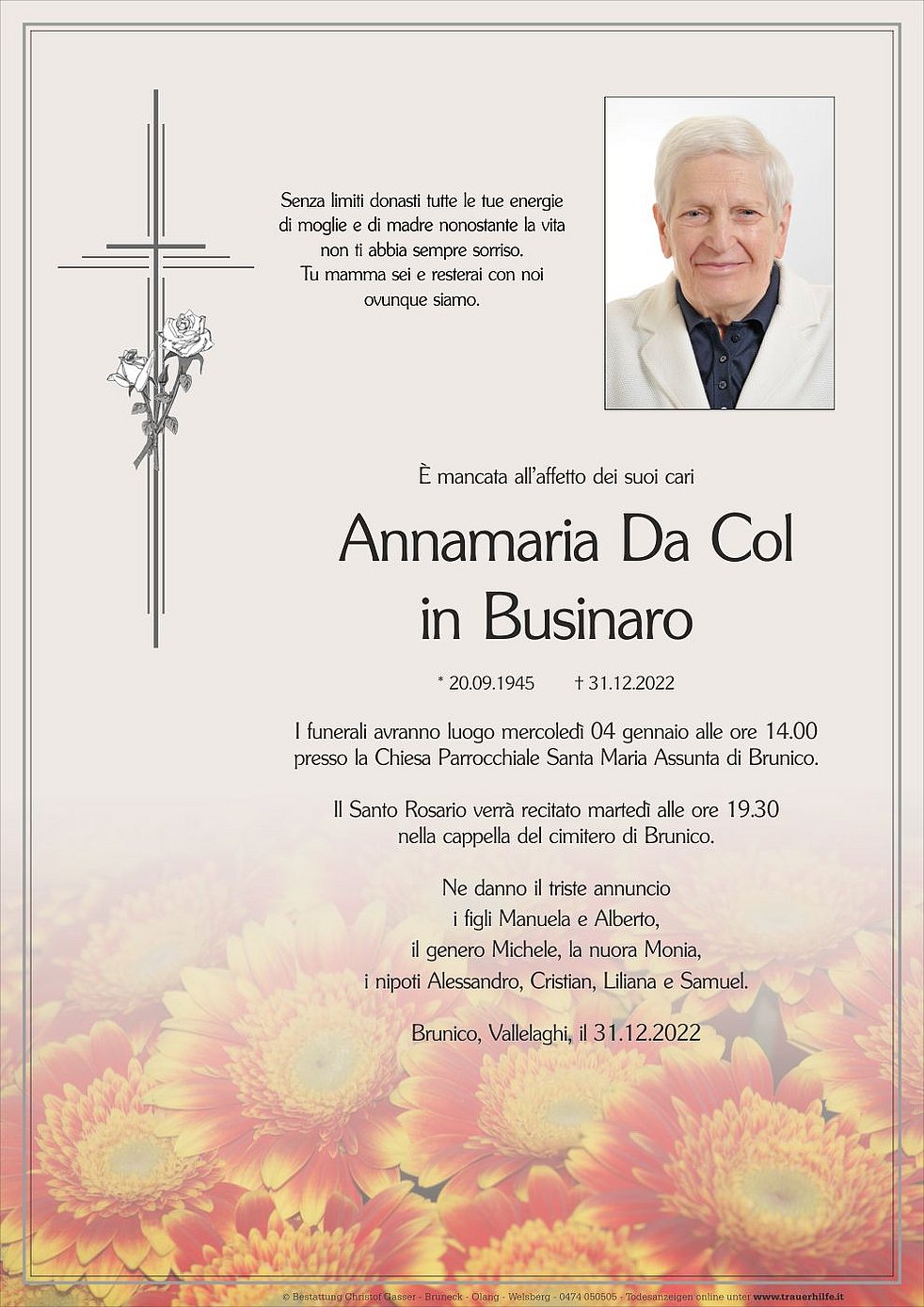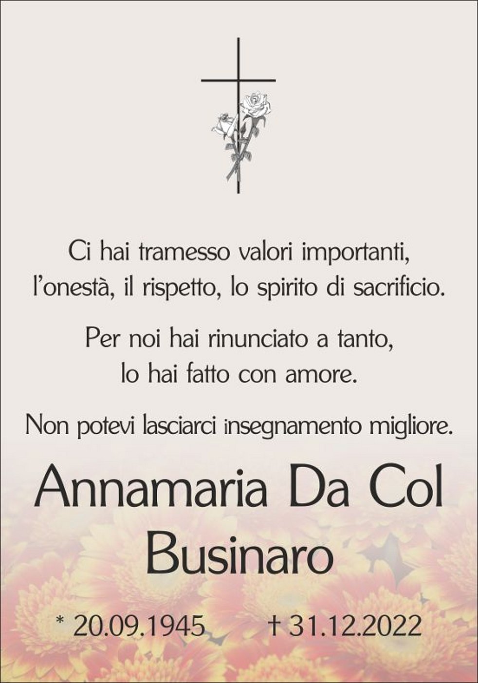 I funerali avranno luogo mercoledì 04 gennaio alle ore 14.00
