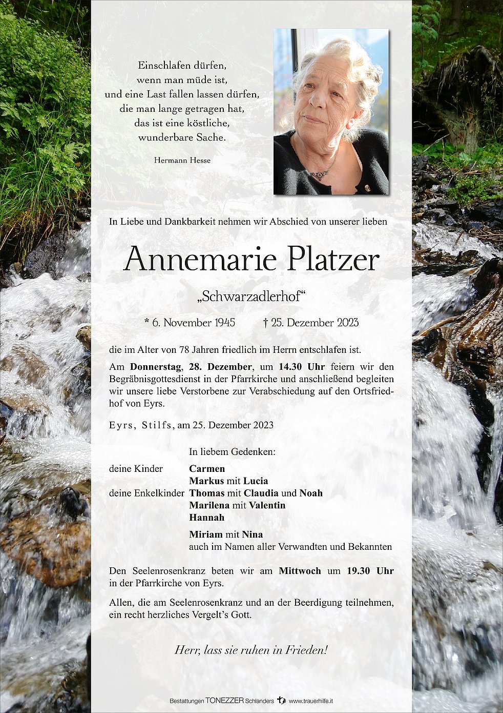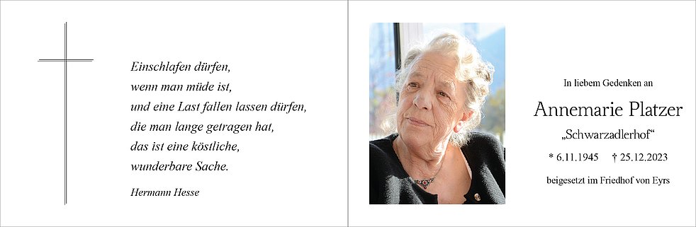 Am Donnerstag, 28. Dezember, um 14.30 Uhr feiern wir den Begräbnisgottesdienst in der Pfarrkirche und anschließend begleiten wir unsere liebe Verstorbene zur