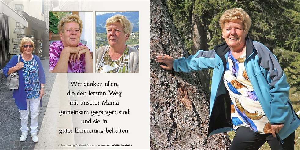 Dankbar für die lange Zeit, die wir gemeinsam erleben durften, nehmen wir traurigen Herzens Abschied von meiner lieben Frau, unserer herzensguten Mutter, Schwiegermutter und Oma, Frau